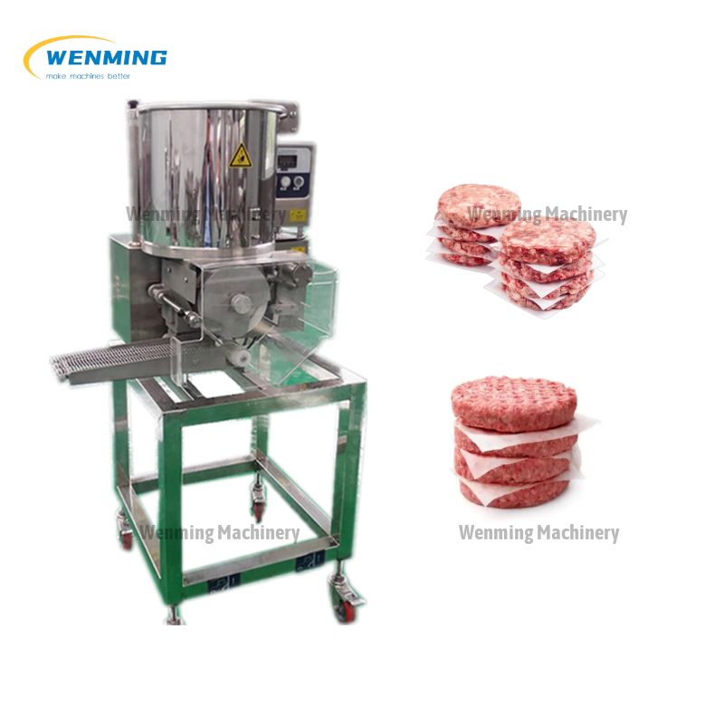 2) Esta máquina moldeadora de hamburguesas puede producir hamburguesas de diferentes formas, redondas, cuadradas y productos con formas especiales. Puede producir diferentes materias primas, como pescado, res, cerdo, pollo, verduras, etc.