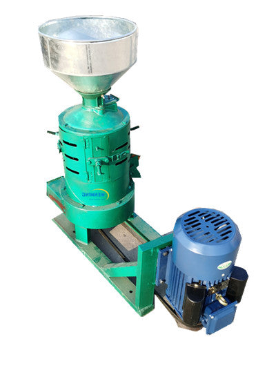Máquina peladora equipada con malla de hierro en la cámara de trabajo con muela instalada en la criba, la criba y un espacio de pelado de grano crudo formado entre la molienda de la muela, la malla de la criba y la rueda de rotación inversa en el trabajo, eliminación de semillas de granos alimenticios, al mismo tiempo en el pelado del aventamiento para separar el grano y la cubierta de la semilla, reduciendo así en gran medida la tasa de rotura, la calidad del pelado y la producción.